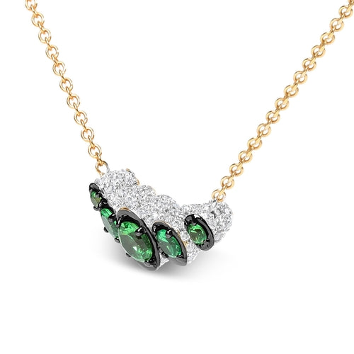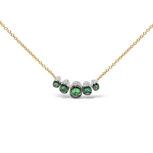 18K Rose Gold 3/4 Cttw Pave Diamonds and Graduated Green Tsavorite