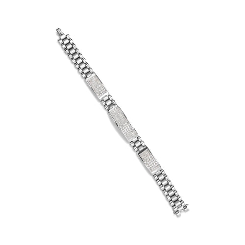 This elegant and sophisticated 14K white gold bracelet is the perfect accessory for any stylish man. The identification plate bracelet features a total diamond weight of 12 carats, with a total of 185 princess cut diamonds creating a stunning and eye-catching piece. The diamonds are natural and have a beautiful G-H color and VS1-VS2 clarity, which means they have a high level of brightness and clarity. The invisible setting adds a sleek and modern touch to the bracelet, which fits wrists up to 8.5 inches and has a secure box with latch clasp. This ID bracelet is versatile enough to be worn to formal events or as a stylish everyday accessory. Any man who wears this bracelet will surely make a statement with his impeccable taste and style.